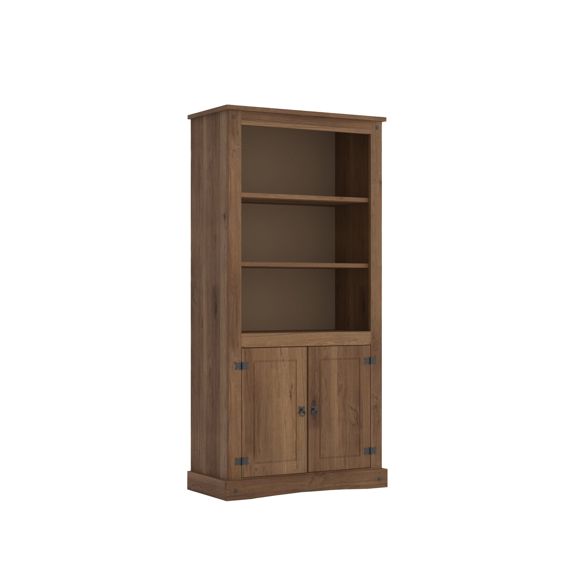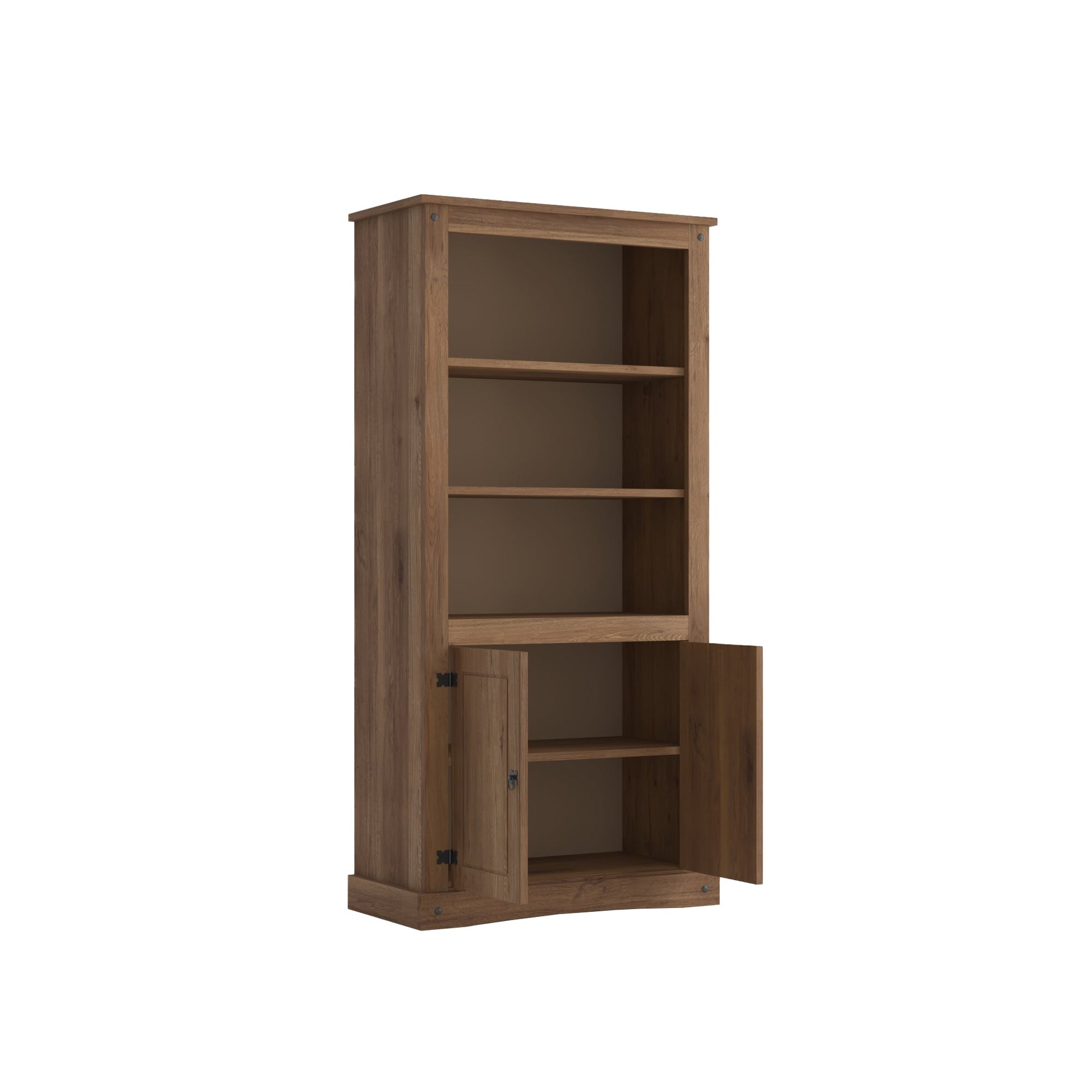 Mantén tu espacio organizado con el Biblioteca de dos puertas y dos estantes. Diseñado en hermoso color nogal, este mueble elegante ayuda a mantener tus áreas ordenadas y proporciona un estilo único con el tono versátil nogal.