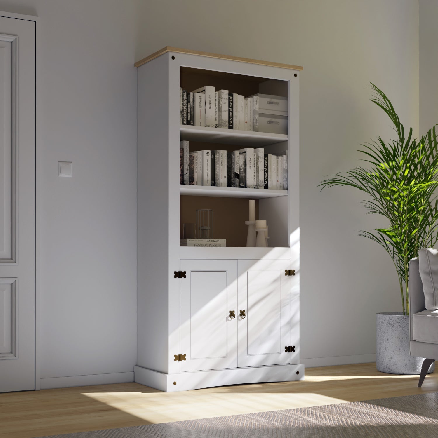 La Biblioteca de 2 puertas y dos estantes en color blanco es perfecta para organizar y guardar pequeños libros. Esta construcción de calidad ofrece resistencia a la vez que un diseño moderno. El color blanco es una opción universal que combina con muchos estilos de decoración.