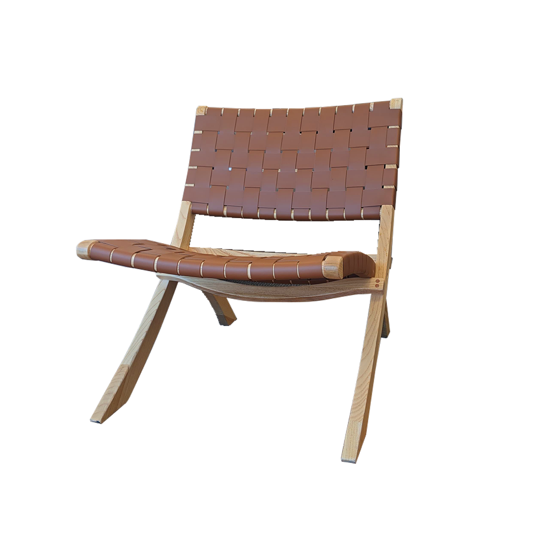 Butaca Estella madera masciza de ébano y tiras de Eco Cuero Friendly, color marrón claro o negro.