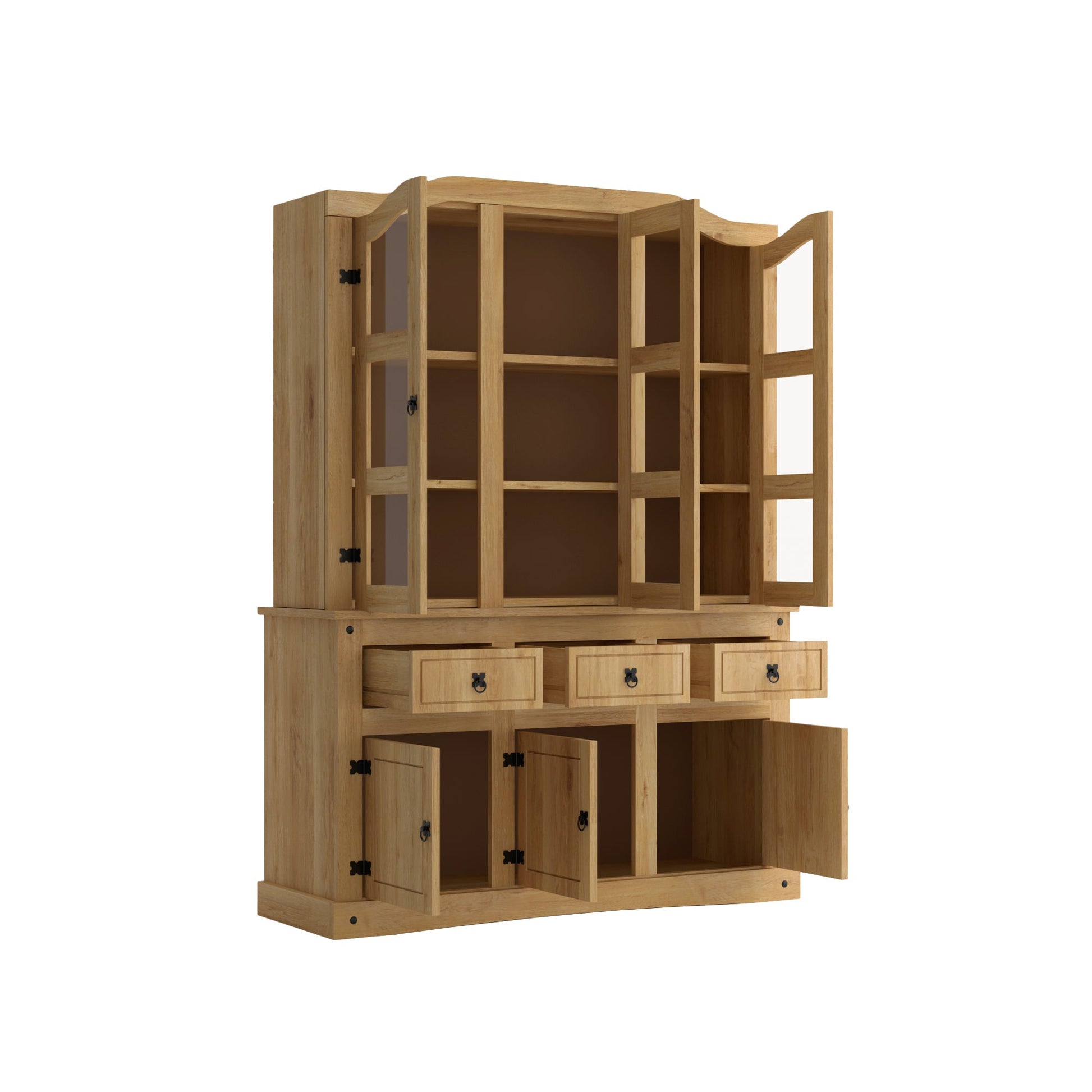 Disfruta de la increíble funcionalidad de nuestro Cristalero 6p. Con sus seis puertas, tres cajones y un color natural moderno, tendrás una solución de almacenaje perfecta para tu hogar. ¡Es una pieza práctica y versátil!