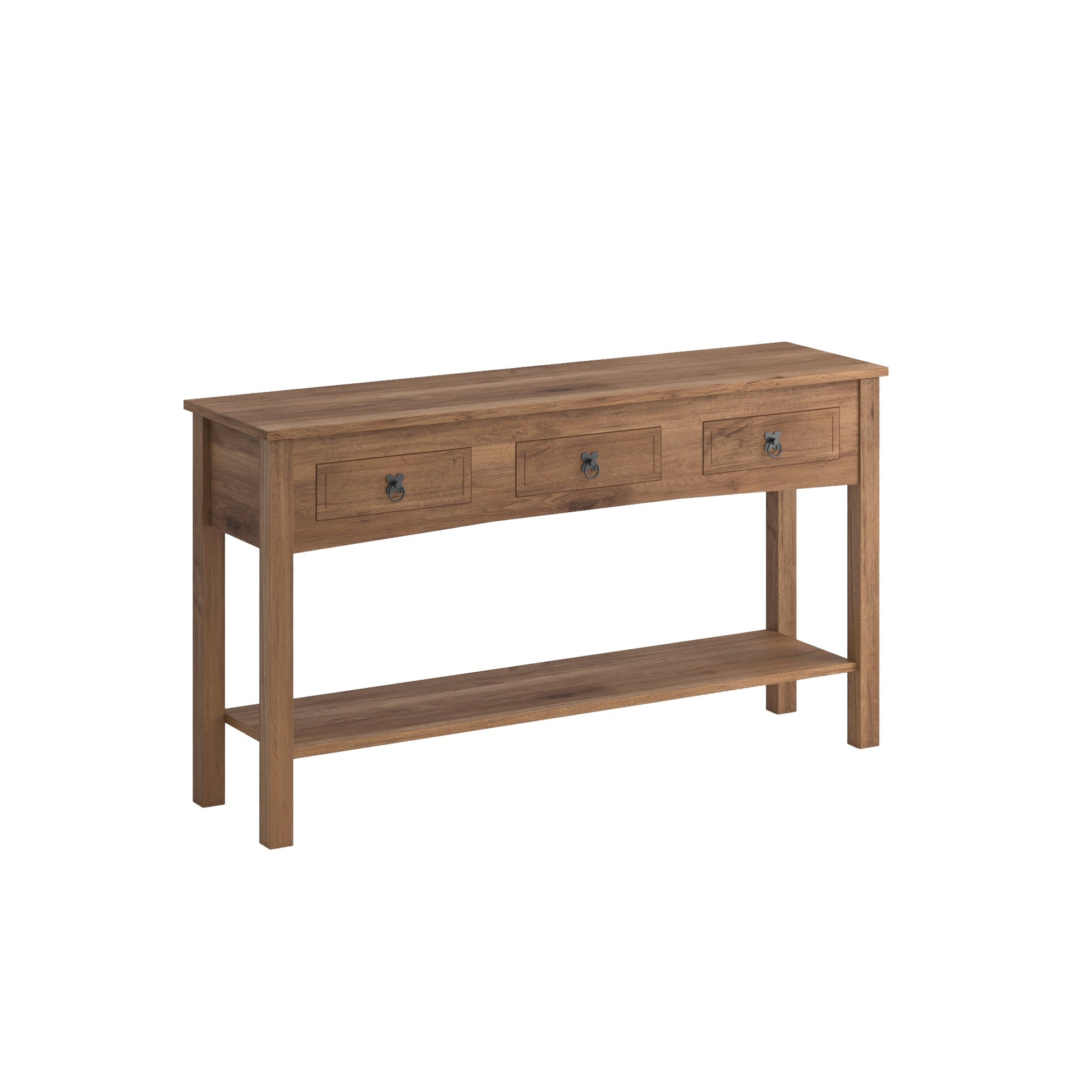 Mesa de arrime 3 cajones, color nogal.